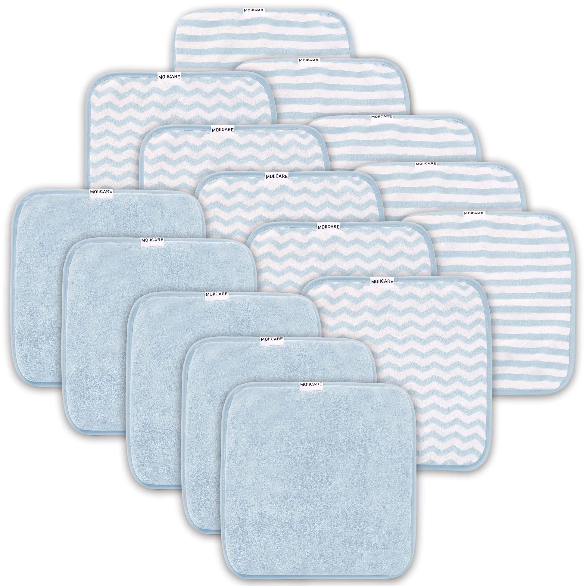 MOIICARE 15 Pack Baby Washcloths - Super Soft Absorbent Wash Cloths for Boy and Girl Newborn Essentials Baby Clothes Gentle on Sensitive Skin for Face and Body 10" by 10" Aquamarine